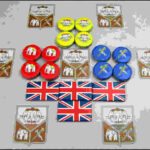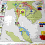 Εδώ όμως είναι και το παράδοξο του παιχνιδιού ενώ από την μια παίρνεις το καβάκι και έχεις μεγαλύτερο έλεγχο, ταυτόχρονα αυτή η φατρία αποδυναμώνεται στο ταμπλό!!! Το ταμπλό αναπαριστά τον χάρτη της περιοχής με τις οκτώ περιοχές οπού θα γίνουν οι μάχες/εκλογές η σειρά που θα επιλυθεί κάθε περιοχή ορίζεται από την αρχή (όπως στο Maharaja) αλλά υπάρχει κάρτα που μπορεί να αλλάξει την σειρά.