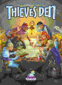 Στο Thieves Den, στον κόσμο του 10 Minute Heist: The Wizard’s Tower, οι παίκτες είναι κλέφτες που στέλνουν τους βοηθούς τους στην πόλη για να πιάσουν τους πιο πολύτιμους θησαυρούς, και μετά πουλάνε αυτά τα παράνομα κέρδη στον υπόκοσμο για να αυξήσουν τη φήμη τους ως αρχικλέφτες. Ορισμένοι θησαυροί μπορούν επίσης να περάσουν στον Alazar, τον μάγο, για ειδικές δυνάμεις. Το Thieves Den παίζεται σε τρεις γύρους. Σε κάθε γύρο, κάθε παίκτης επιλέγει τρεις κάρτες τοποθεσίας ως πιθανούς στόχους για την κλοπή τους. Όλες αυτές οι τοποθεσίες είναι δημόσια γνώση μιας και οι κάρτες αφήνονται ανοικτές μπροστά από το προσωπικό ταμπλό του κάθε παίκτη. Στην επόμενη φάση οι παίκτες παίρνουν σειρά στέλνοντας τους βοηθούς τους στις τοποθεσίες για να κερδίσουν τα χρήματα. Μπορείτε να στείλετε τους κλέφτες σας σε οποιαδήποτε τοποθεσία, αλλά αν τους στείλετε στην τοποθεσία ενός άλλου παίκτη, αυτός ο παίκτης μπορεί επίσης να πάρει ένα bonus, μερικές φορές ακόμα και επιπλέον θησαυρό, μερικές φορές περισσότερους κλέφτες κτλ. Κατά τη διάρκεια αυτής της φάσης, οι παίκτες μπορούν επίσης να στείλουν κλέφτες για να μεταφέρουν ειδικές κατηγορίες θησαυρών σε έναν από τους κλεπταποδόχους τους υποκόσμου, κερδίζοντας αυτούς τους πόντους φήμης για τον παίκτη. Bonus πόντους φήμης κερδίζονται επίσης με την σύναψη σχέσεων με συγκεκριμένους κλεπταποδόχους . Μετά από τρεις γύρους, ο παίκτης με τη μεγαλύτερη φήμη είναι ο νέος αρχηγός της πόλης…
