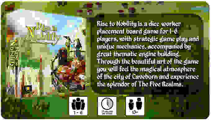 Rise to Nobility is a brand new game that comes to shake what most gamers and newcomers to the hobby take for granted. It is all about a fantasy theme (The Five Realms), commonly shared by another game of the company called Cavern Tavern, which also features similar fantastic and eyes catching artwork. Mechanically-wise we have a dice-worker placement game where each places starts their turn by rolling five dice and yielding this way the available actions that will have to be best utilized (and or manipulated) for the current turn. Each site on the map has a very specific set of requirements in dice values making this way each decision important and crucial.